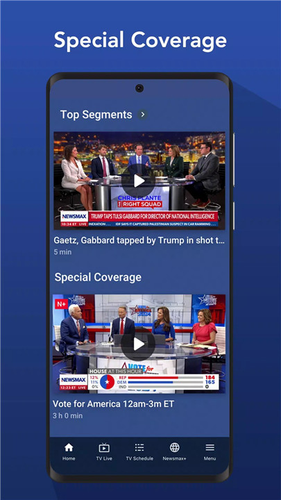 Newsmax is a premier news app delivering comprehensive coverage, breaking headlines, and real-time updates on topics that matter most. Recognized by Forbes as “a news powerhouse” and by The New York Times as “a potent force in U.S. politics,” Newsmax has grown to become America’s fastest-growing news channel. From the White House to Congress, the app provides trusted news on U.S. politics, personal finance, health, faith, and freedom issues.
