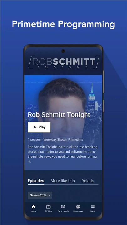 Newsmax+ is available as a subscription within the app, offering 24/7 channel access, archives, documentaries, and expert commentary.
