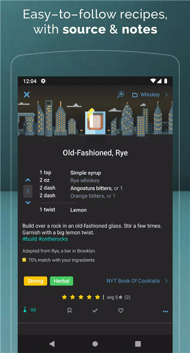 Unlock over 2,000 premium cocktail recipes curated from expert bartenders, classic mixology books, and modern cocktail bars. Browse packs such as Tiki Drinks, Holiday Cocktails, Whiskey Classics, and Aperitivo Favorites. Every recipe is categorized by flavor profile — sour, strong, dry, sweet, spicy, or savory — making it easy to find a drink that matches your mood.