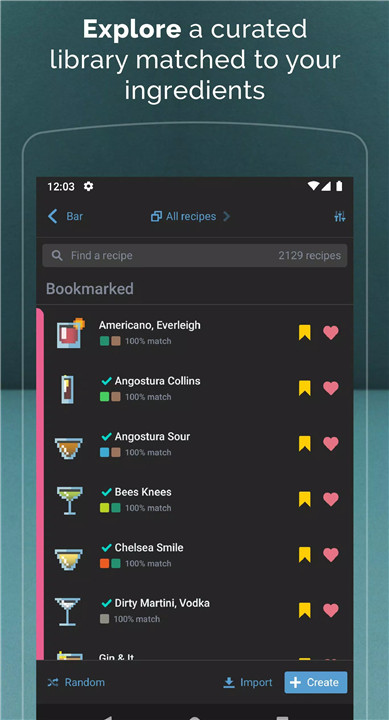 Mixel lets users input the ingredients they own, then automatically suggests cocktails that can be made from that list. You can browse, filter, and save recipes effortlessly.