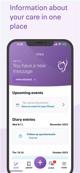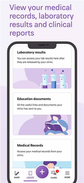 You can view appointments, lab results, medical records, clinical documents, and educational resources shared by your clinic. You can also report symptoms and send images.