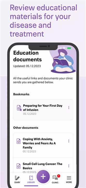 Learn more about your condition and treatment through educational materials provided by your clinic. You can also use Noona’s personal diary feature to track your wellbeing — including notes, symptoms, and photos — creating a detailed picture of your health journey over time.