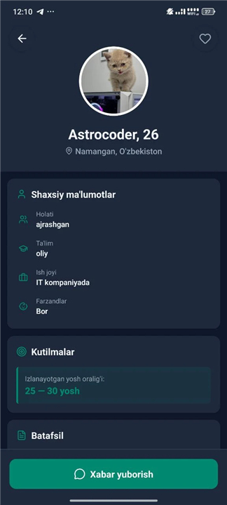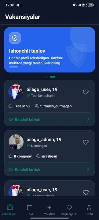 Find serious relationships and marriage on OilaGo.uz. A secure dating app for adults (18+) with verified profiles and a safe environment. Download the latest version of OilaGo.uz to enjoy new features and updates immediately!