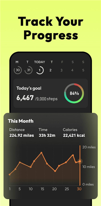 Users can set weekly or yearly fitness goals to create consistent running habits. Leap provides detailed analysis through stylish graphs, comparing performance over time, and identifying patterns to improve efficiency and outcomes.