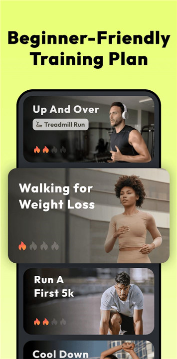 · Running for Weight Loss: Beginner-friendly running plans that guide users from jogging to sustained runs.