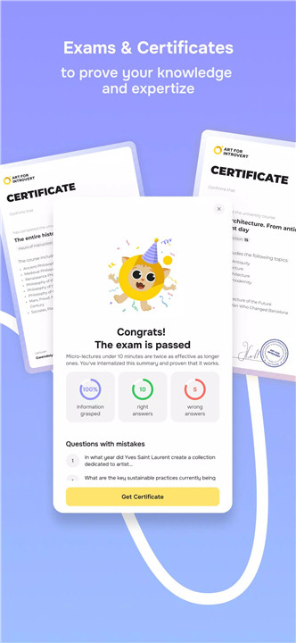 Progress tracking, certificates for completed courses, and user ratings encourage continuous growth. The app’s game mechanics keep you motivated and reward your learning achievements.