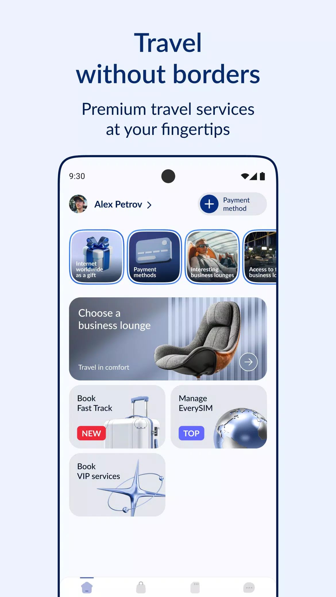 EVERY is the ultimate travel companion, designed for modern travelers seeking comfort, connectivity, and convenience. The app combines essential travel services in one platform, including digital SIM cards (eSIM) for internet, calls, and SMS abroad, access to airport and train station lounges, Fast Track services for quick passport control, and VIP escort options. EVERY ensures stress-free travel by providing tools and services that make journeys smoother, faster, and more enjoyable, whether for business, leisure, or digital nomad lifestyles.