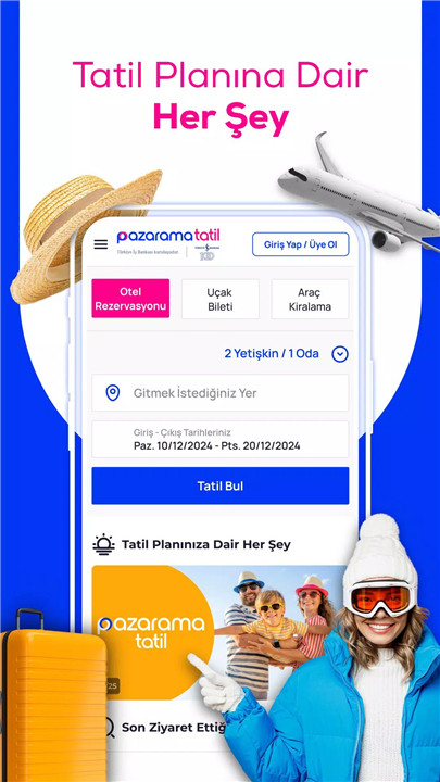 Plan your perfect getaway with Pazarama Holiday. Book flights, hotels, and car rentals to destinations across Europe and Turkey, including Paris, Rome, Berlin, Istanbul, Bodrum, and Antalya. Enjoy exclusive travel deals and explore dream destinations effortlessly.