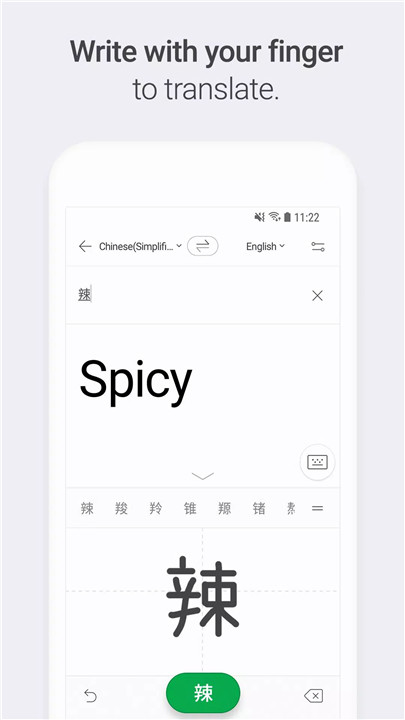 Users can write text with their fingers, and Papago identifies the correct word and provides accurate translations.