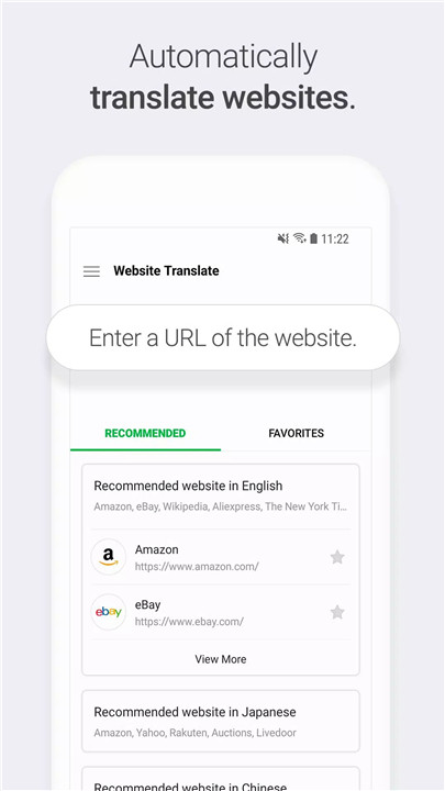 Entire foreign-language websites can be translated automatically by entering the URL, making online browsing easy across languages.