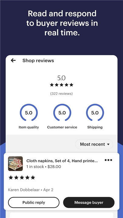 Running an Etsy shop just got a whole lot easier. Designed for busy entrepreneurs, creators, and small business owners, Etsy Seller gives you full control of your shop—wherever you are. From updating product listings to chatting with buyers and viewing performance stats, Etsy Seller ensures that your business is always within reach.