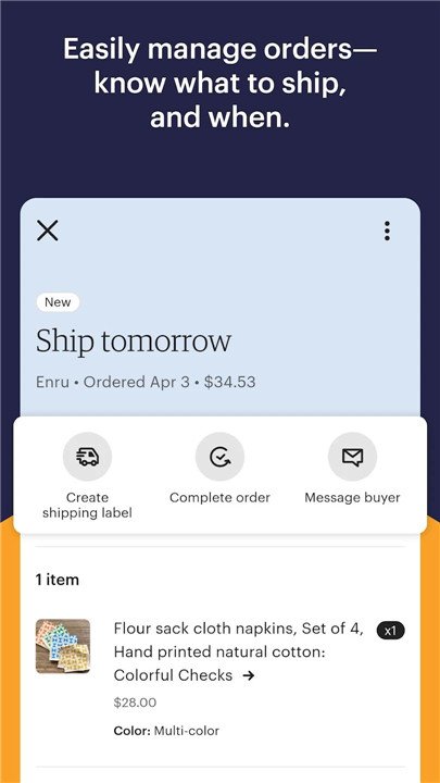 The improved order dashboard helps you stay organized. Easily see which items need to be shipped and when, helping you meet your shipping deadlines and provide a top-tier experience for your customers.