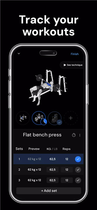 The app calculates the ideal weight and intensity for each exercise using scientific principles. This ensures optimal muscle growth every session without guessing, minimizing plateaus and maximizing efficiency.