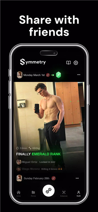 Connect with other athletes, share achievements, body transformations, and workouts. Symmetry’s community feature encourages motivation, friendly competition, and shared growth.