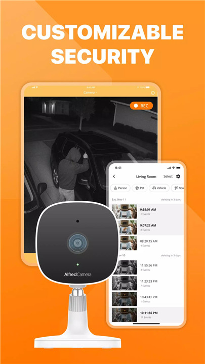By using both lenses on supported devices, AlfredCamera provides wide-area coverage for complete home monitoring.