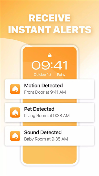 The app detects motion instantly and sends real-time alerts, enabling immediate response to potential threats or unusual activity.