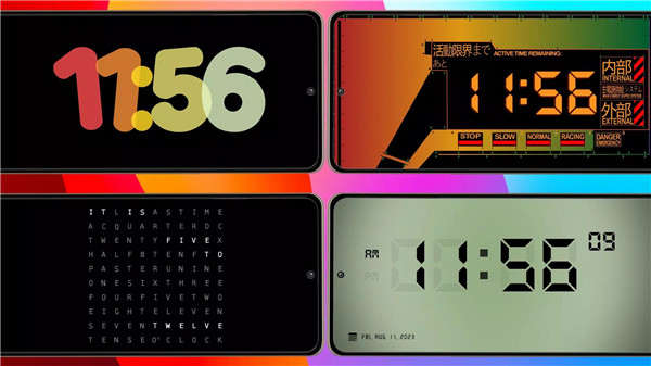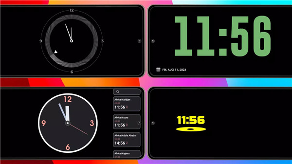 Users can select their preferred time display style—sophisticated analog clocks, modern digital displays, or a mix of both. Each style includes extensive customization options, allowing changes in size, font, colors, and background themes.
