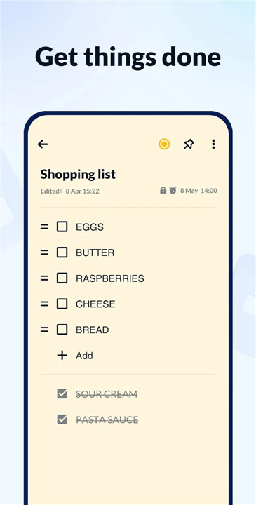 Notein provides two note-taking modes: text mode, featuring a lined-paper style, and checklist mode for tasks or shopping lists. Notes are automatically saved as they are typed. Users can quickly create memos, to-do lists, school notes, meeting notes, or any other note type. Notes can be edited, archived, deleted, shared, or checked off, making task management simple and efficient.