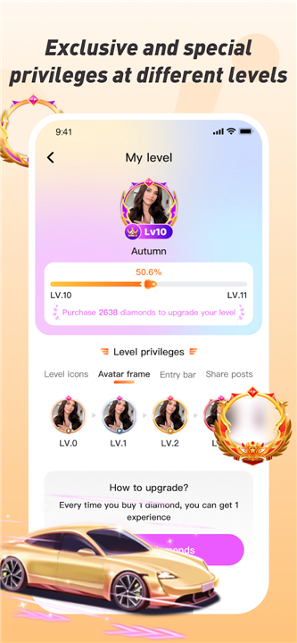 • Users earn experience points to unlock higher levels, each offering a suite of exclusive visual and functional benefits.