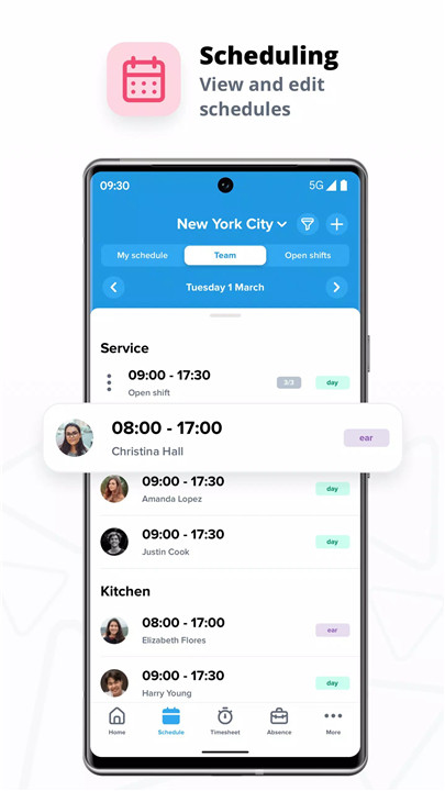 · Employee-Driven Scheduling: Staff manage their own swaps, leave, and availability within the app, reducing back-and-forth communication and freeing managers to focus on more important tasks.