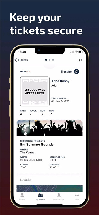 ShowTicks ensures tickets cannot be lost, stolen, or fraudulently copied. Each ticket is linked to a registered device, protecting event organizers, artists, teams, venues, and fans. QR codes for tickets are only revealed 48 hours before gate entry, adding an extra layer of security.