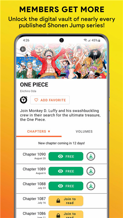 For only $3.99/month (USD*), unlock the entire Shonen Jump digital vault with over 20,000 manga chapters at your fingertips. Members enjoy unlimited access to the full catalog, enabling binge reading of entire series or catching up on missed chapters. Start with a 7-day free trial to explore the vast library risk-free.