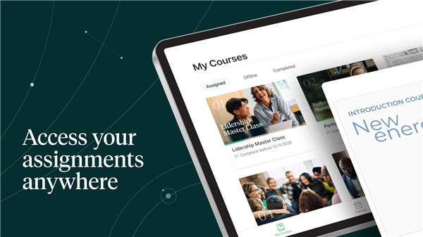 The app offers an intuitive interface in 30 languages, making training accessible to global teams and supporting diverse corporate environments.