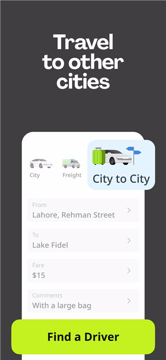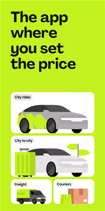 · Simple booking: enter points A and B, name your fare, and select your driver.