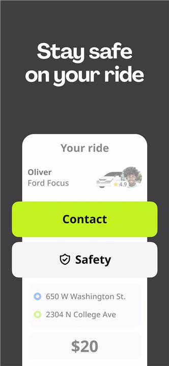· “Share Your Ride” option allows trip tracking with family and friends.