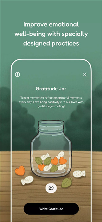 · Gratitude Jar: Boost your wellbeing with a daily gratitude practice that builds emotional resilience.
