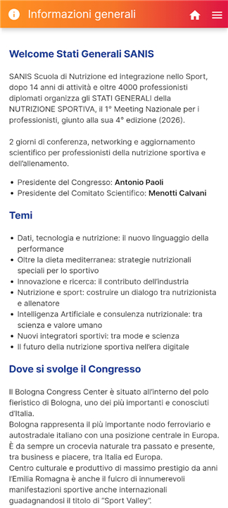 • The SANIS STATI GENERALI 2026 application serves as the definitive digital companion for the upcoming States General of Sports Nutrition.