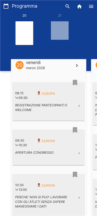 • Detailed floor plans of the Bologna Congress Center are integrated into the app to help users navigate the exhibition areas and session halls with ease.