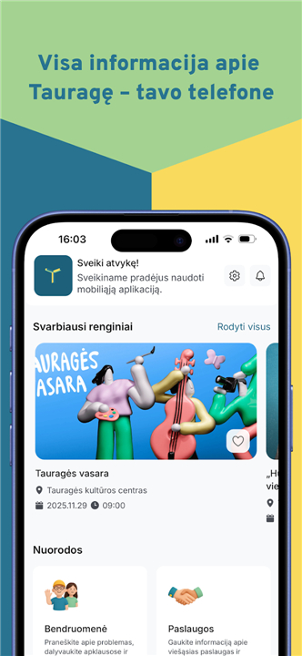 • The app serves as a comprehensive digital guide to the cultural life of Tauragė, listing upcoming events, exhibitions, and educational programs.