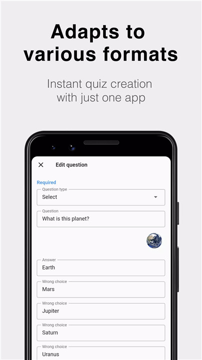 In addition to typing questions manually, you can scan PDFs or images, or import content via CSV files to quickly turn your notes and materials into interactive question sets.