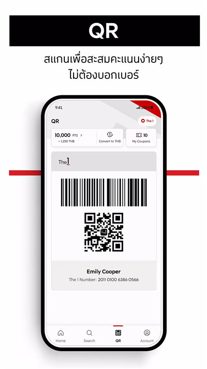 Rotate your mobile phone to instantly display your The 1 membership number and QR/barcode for quick scanning at checkout.