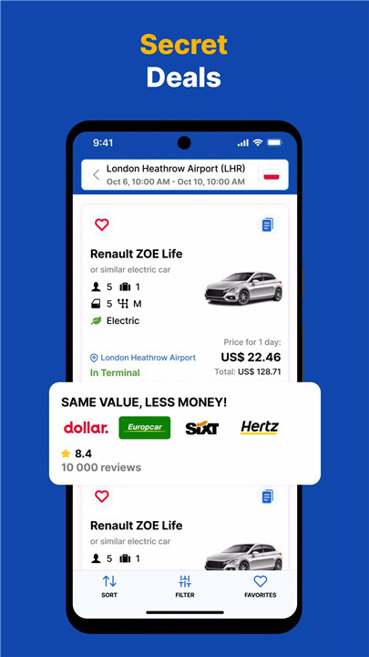 Choose from a broad range of cars to suit your needs, from economy models to larger family vehicles or luxury options. The app partners with over 750 major and local suppliers, including big names like Europcar, Sixt, Alamo, Avis, and Dollar Thrifty, ensuring competitive prices and quality service.