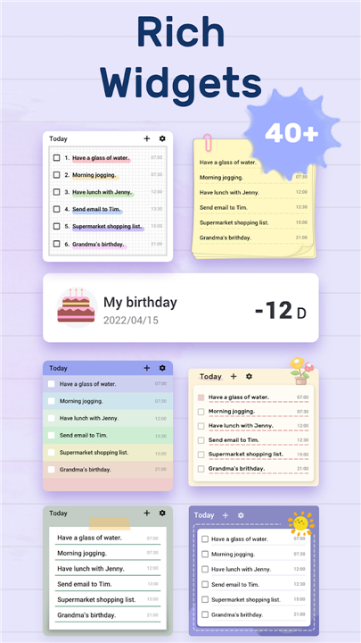 • Capture everything from travel itineraries and study schedules to fitness goals and gift wishlists.