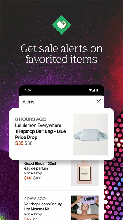 Users can favorite items they like, including clothing, shoes, accessories, or home décor. When the price drops or a promotion becomes available, the app sends a notification so deals can be discovered at the right moment.