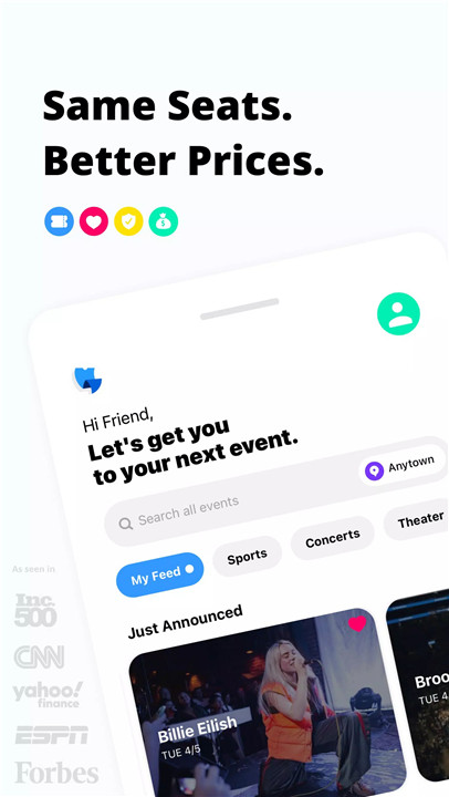 TickPick is your go-to app for purchasing tickets to all your favorite live events—from sports games and concerts to theater performances. Backed by our 100% BuyerTrust Guarantee, you can buy confidently knowing your tickets are valid and your money is protected.
