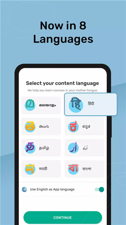 Courses are offered in Malayalam, Tamil, Telugu, Kannada, and Hindi to support regional-language learners.