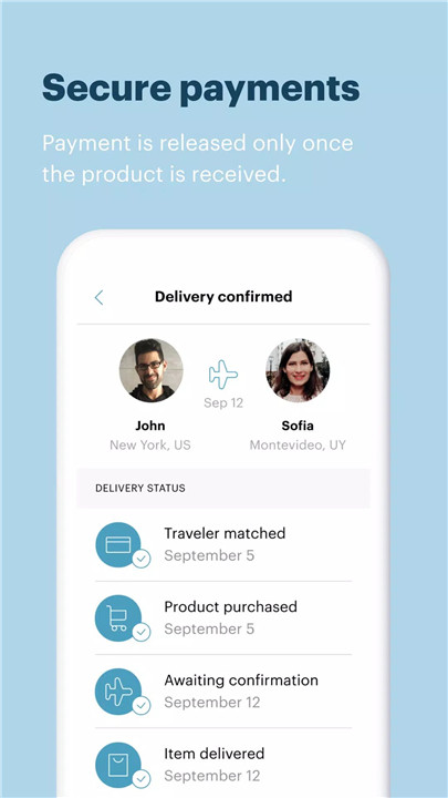 · Receive multiple delivery offers from travelers and choose the best one for your needs.