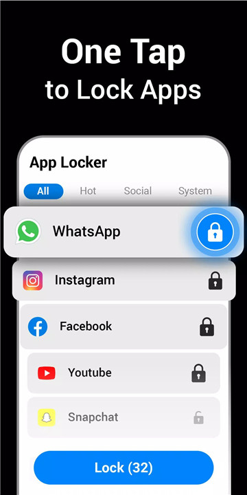 AppLock allows you to lock any app on your phone – from social media to banking, messages to gallery – using fingerprint, pattern, PIN, or password. Just select the apps you want to protect, and AppLock takes care of the rest, keeping your privacy intact.