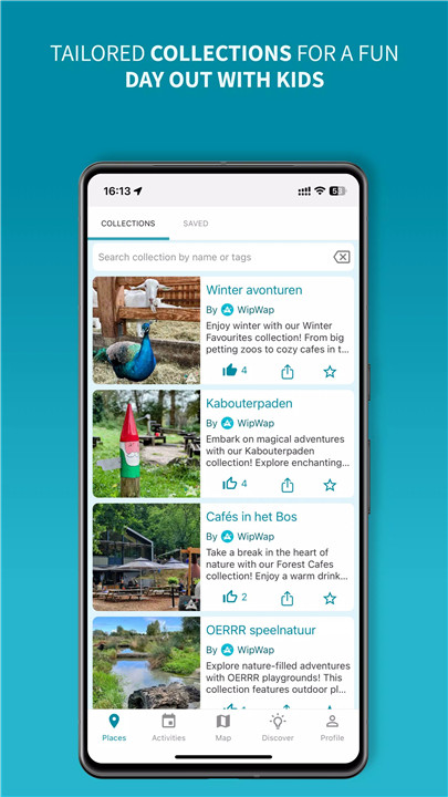 Get suggestions based on your location, your kids’ ages, and your preferences. Whether you want a quiet nature trail or a lively indoor activity, WipWap helps you find the perfect spot for your family.