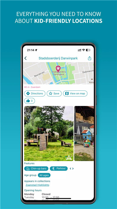 Discover over 4,000 playgrounds, family-friendly cafes, petting zoos, libraries, picking gardens, trails, and more. Each location comes with real photos from our community, giving you a clear idea of what to expect.