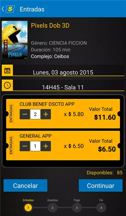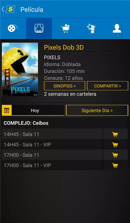 The application allows the reservation of preferred seats in Supercines’ modern theaters. From standard seating to VIP rooms, every visit promises maximum comfort and convenience.