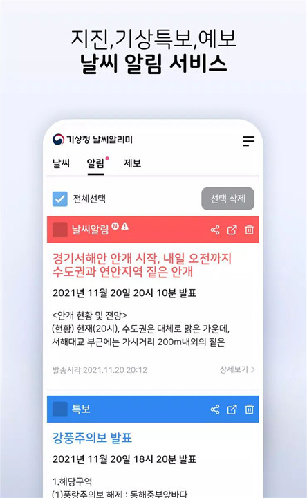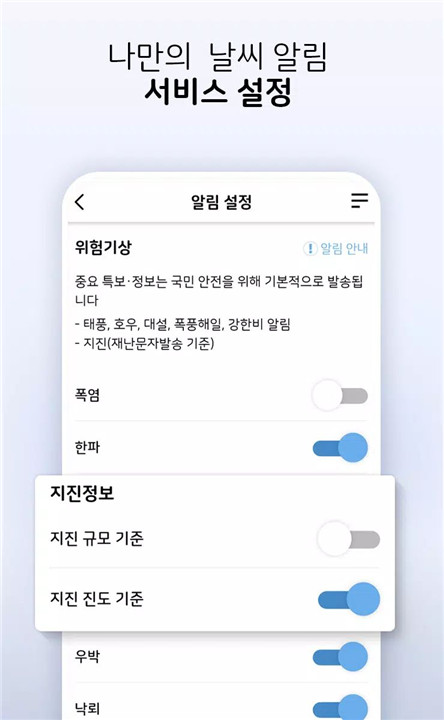 KMA Weather is an official weather notification app provided by the Korea Meteorological Administration, offering users precise and timely updates on severe weather conditions. The app delivers customized alerts based on location, including earthquake warnings, special weather advisories, and other urgent notifications. Its intuitive interface ensures that weather information is easily accessible, providing users with peace of mind and accurate guidance in case of sudden weather changes.