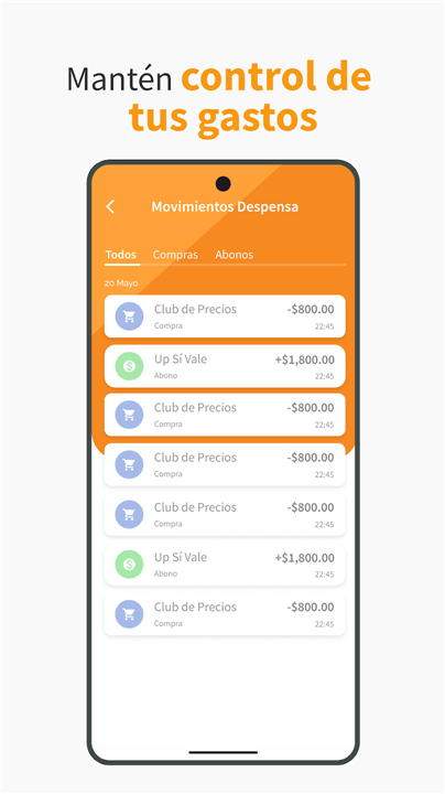 • Monitor your real-time balances and track activity across all your Up Sí Vale cards, including any additional cards linked to your account.