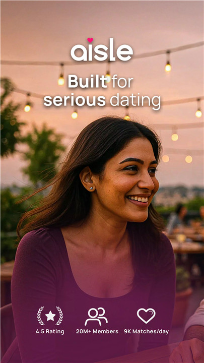 Aisle focuses on a date-to-marry mindset, verified profiles, and intent-based matching, helping high-intent singles find meaningful, long-term relationships.