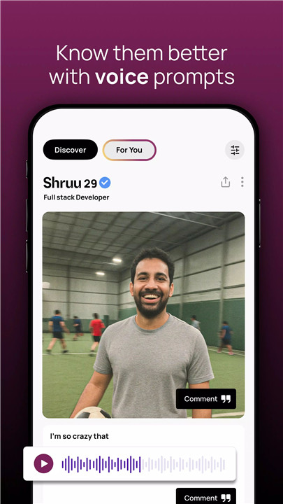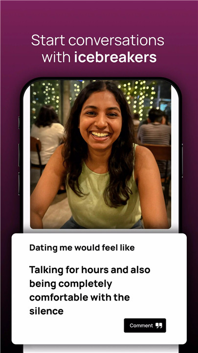 Users can start thoughtful conversations by commenting on profiles, encouraging meaningful dialogue rather than generic messages.
