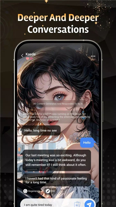 Users can customize AI characters’ personalities and backstories, allowing each conversation to be unique. From tone and style to personal traits, the AI adapts to create a tailored chat experience.
